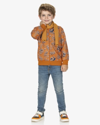 Blusão Infantil Menino em Moletom com Capuz e Bolso - ReiRex - Laranja